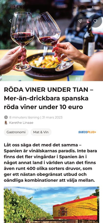 2023 LÄS HELA MAGASINET PÅ WWW.ENSUECO.COM Trevlig läsning! SUECO en MAJ 2023 SPANIEN FÖR SVENSKAR Intervjuer · Nyheter Bostad · Finans Utflykter Sport Fakta Kultur Profiler Politik · Mode · Hälsa VIN Spaniens vinhistoria är minst 3 000 år RECEPT Bjud på en uppfriskande citronkräm LÄS SIDA 34 LÄS SIDA 40 UTFLYKT Följ med på två utflykter maj – den ena går till en häxby och den andra till Don Justos katedral LÄS SIDA 32 OCH 38 MEN VARFÖR HAR FLAMENCOKLÄNNINGARNA PRICKAR? Spanien förknippas stark med flamenco portada.indd 1 22/4/23 20 34 36 40 16 32