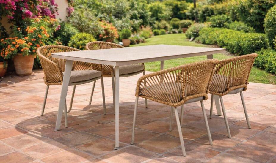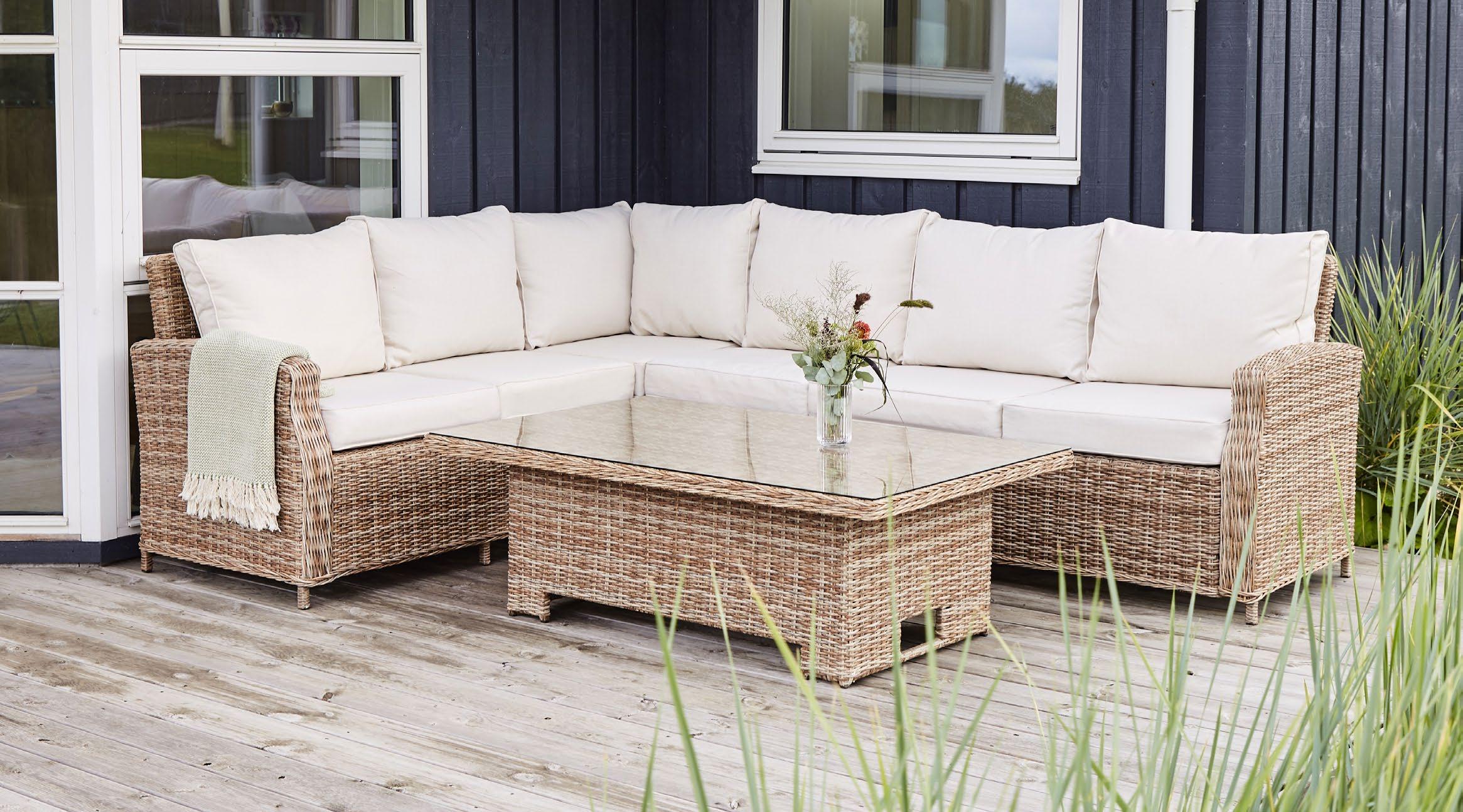 Helena Sofasæt. 225 cm. 3-pers. sofa samt 2 loungestole og sofabord str 66 x 110 cm I akacia-træ og kraftigt polyester reb, der er meget velegnet til den spanske sydkyst. Luksushynder med vandafvisende air flow-konstruktion Helena hjørnesofasæt. I akacia-træ og kraftigt polyester reb, der er meget velegnet til den spanske sydkyst Luksushynder med vandafvisende air flow-konstruktion. Str. 225x225 cm. Bord str. 90x90 cm.