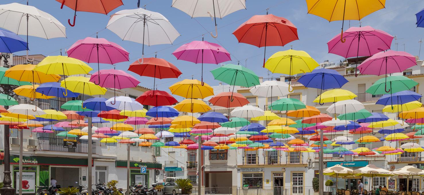 Renoveringen af landsbyens centrale plads, Plaza de la Constitución, er overstået, men det mest iøjnefaldende manglede indtil for et par dage siden; paraplyerne. Siden 2015 har pladsen nemlig været overdækket med 600 farvefyldte paraplyer, som både har skabt opsigt og skygge. De er nu atter tilbage på sin plads.