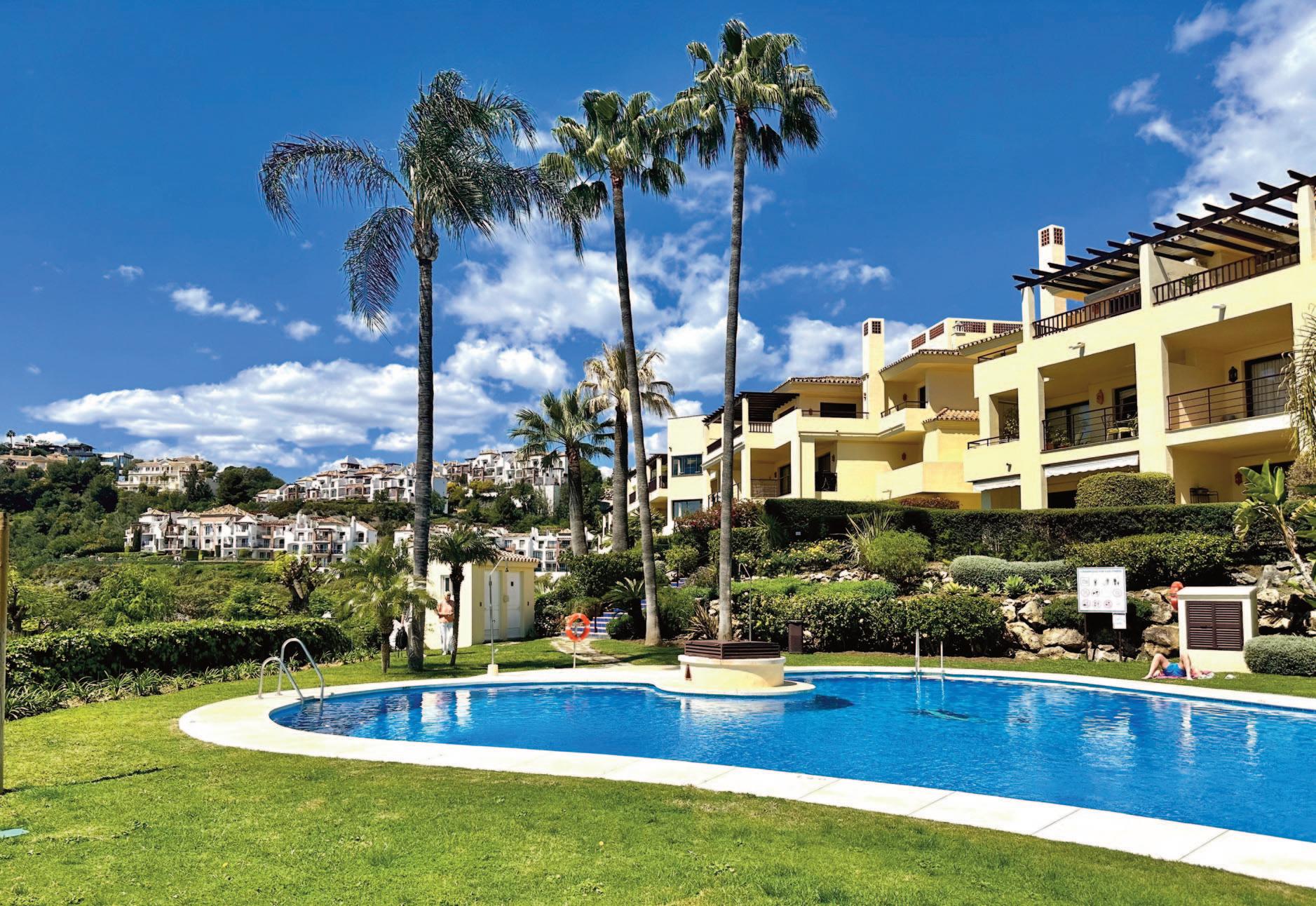 Lejligheden har privat tagterrasse på 60 m² med jacuzzi og 360-graders udsigt – et ideelt sted til afslapning. Til ejendommen hører en privat overdækket parkeringsplads samt adgang til en velholdt fælleshave og pool.