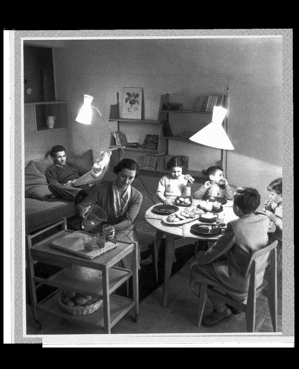 The new concept of a “living-room” (pièce à vivre) was launched at the “Logis 49” fair in Paris, combining two tradi tionally separate spaces for dining and resting or “living” and placing the kitchen nearby. Forward-thinking for its time, and driven by a strong social conscience, Gascoin’s democratic design connected art and industry, bringing together clean aesthetics, efficient manufacturing processes and common sense to create some of the first modular and multifunction al furniture sets. They balanced utility with elegance, used coherent design to enable affordability, and have been de scribed as “a model of modernity”.