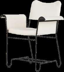 The Tropique Dining Chair is available with black or off-white powder-coated frames, for durability outdoors, and two up holstery options. The option of adding tasseled fringes to the arms, seat, and backrest introduces a note of playfulness perfectly in keeping with the design’s laidback poolside char acter. Matégot’s assured used of textiles in this collection offers a hint of his later career, as, having found internation al success as a furniture designer, he moved on to become equally influential as an upholsterer.