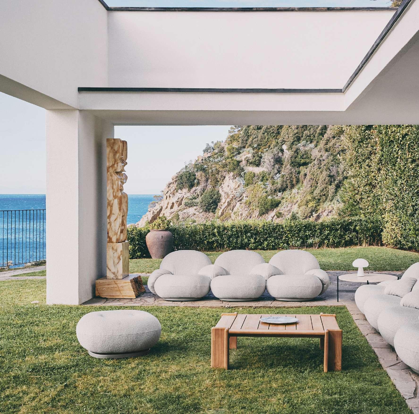 Breaking boundaries, Pierre Paulin’s pioneering seating con cept is moving outdoors. Enchanting exteriors demand ded icated seating to define spaces and create ambience. The sculptural softness of the Pacha Collection has always reward ed the sitter with a level of relaxation akin to sitting on the clouds that inspired it. Now the indoor collection’s signature comfort and distinctive aesthetics are available outside. Its low-slung typology – a rarity among outdoor seating products – is sure to make a statement.