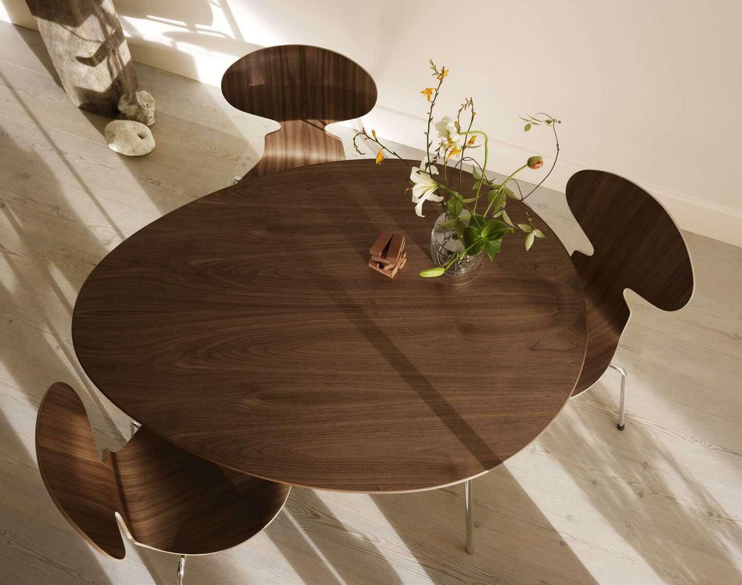 When Arne Jacobsen first designed the Egg™ table in 1952, it was to elevate the everyday. The elliptical design is now offered for contemporary spaces in FSC-certified walnut veneer and polished chrome, continuing to raise the bar for our daily rituals. Equally purposeful as a kitchen or dining table in smaller spaces as it is in a home office, it fits seamlessly into any setting.
