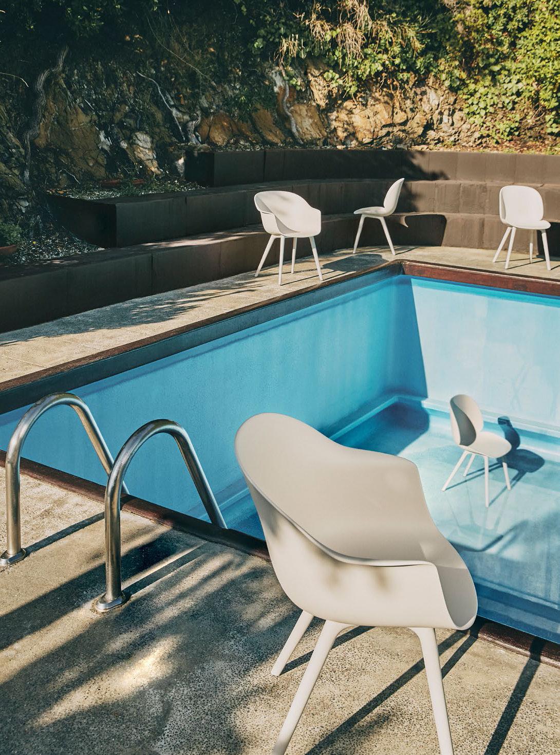 The plastic editions of two of GUBI’s most popular dining chairs, the Beetle and the Bat, have been reimagined for outdoor use. Reexamining their materials, aesthetics and function has led to the addition of an outdoor treatment, opening up new possibilities and making the chairs perfect for both indoor and outdoor use.