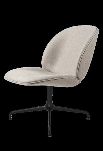 Right:: Beetle Lounge Chairs with conic base, upholstered in GUBI Dandy 606