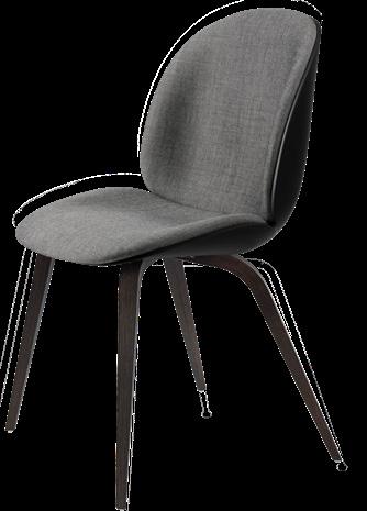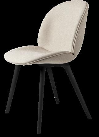 Right: Beetle Dining Chair with conic base, Fully upholstered in GUBI Dandy 906