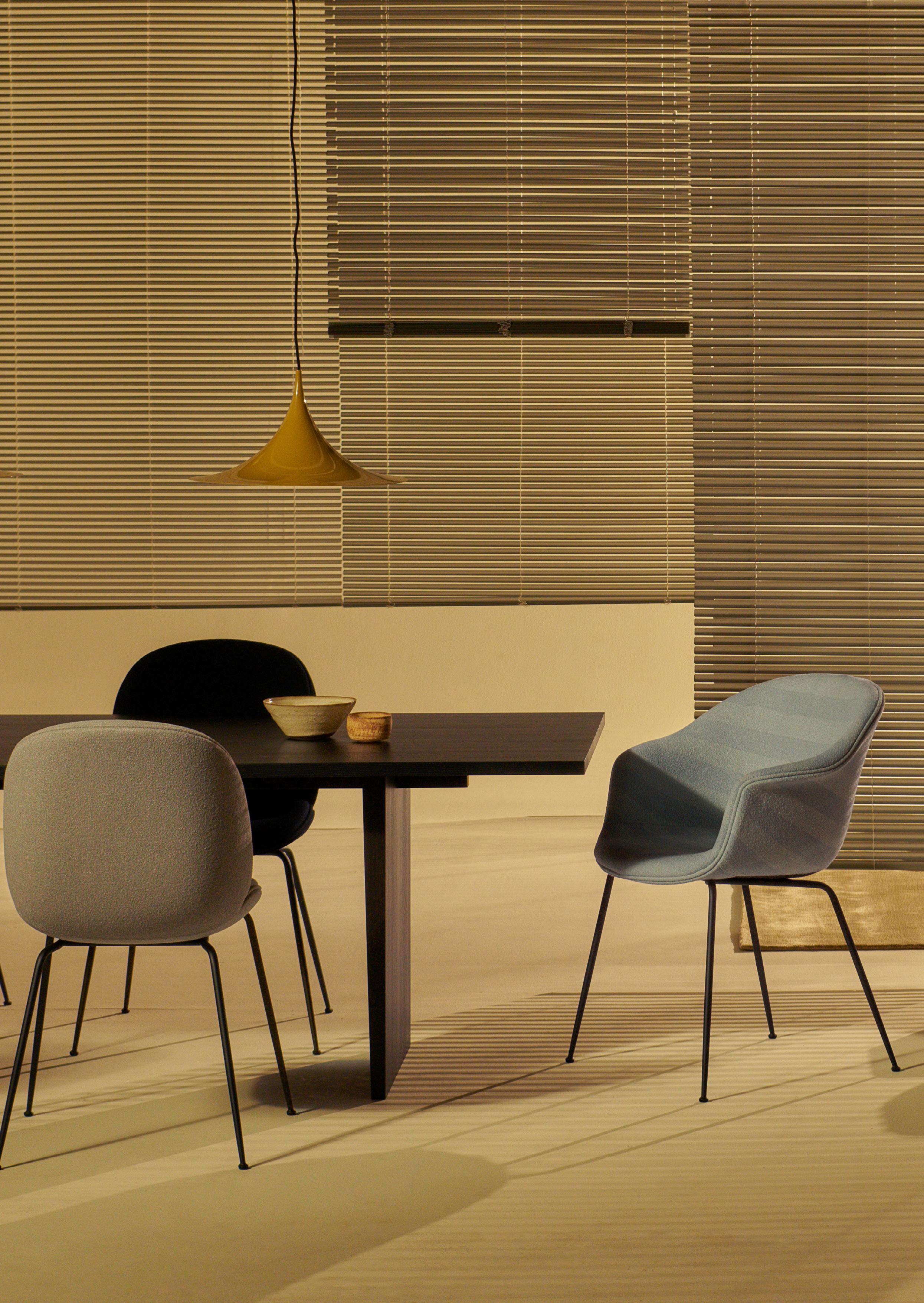 In a major step towards more responsible production, GUBI has redeveloped GamFratesi’s beloved designs using a recycled-plastic composite. Utilizing advanced technology and customized material blends comprising over 50% recycled plastic, GUBI has been able to make production significantly more responsible, while retaining the same quality and performance as virgin plastic. Every variant of both Beetle and Bat will now be available in the new material – a leap forward in GUBI’s journey towards phasing out virgin plastic.