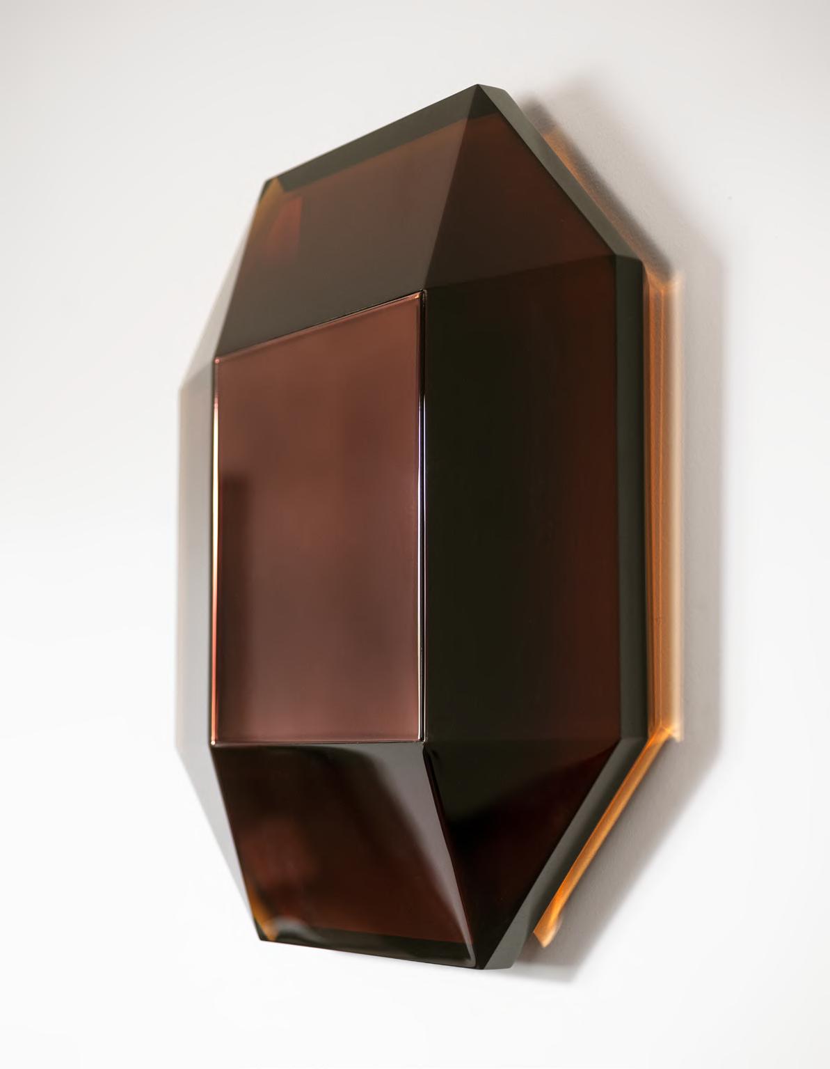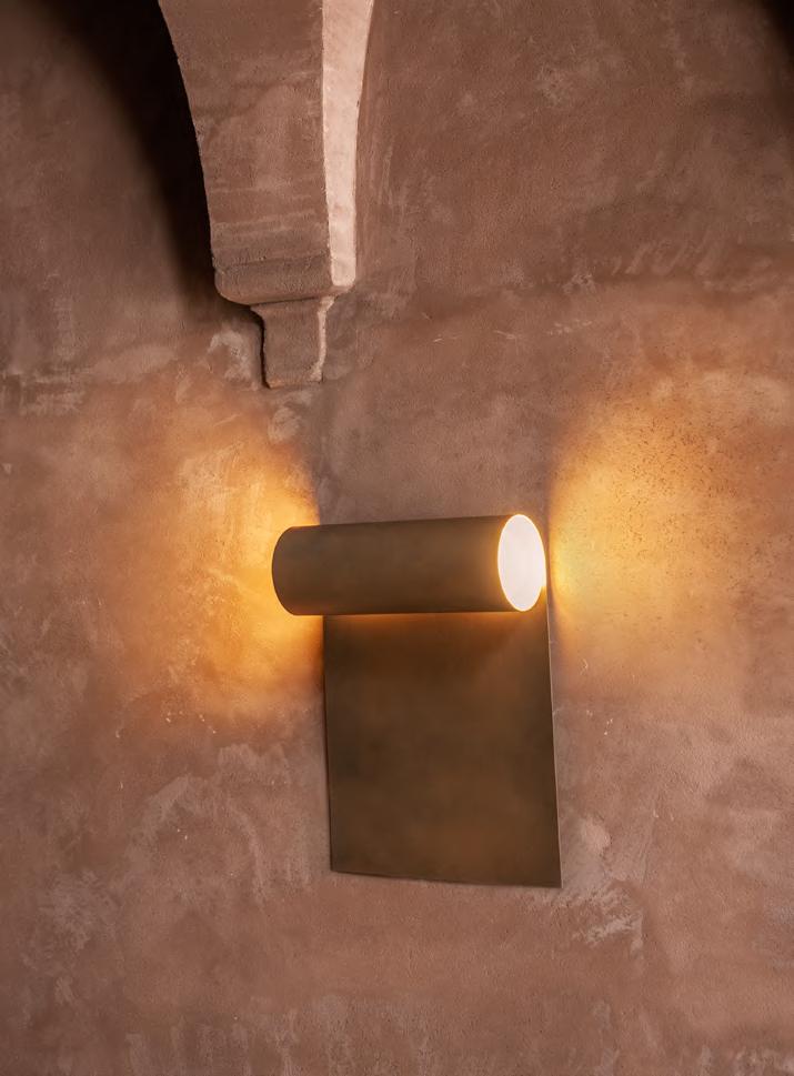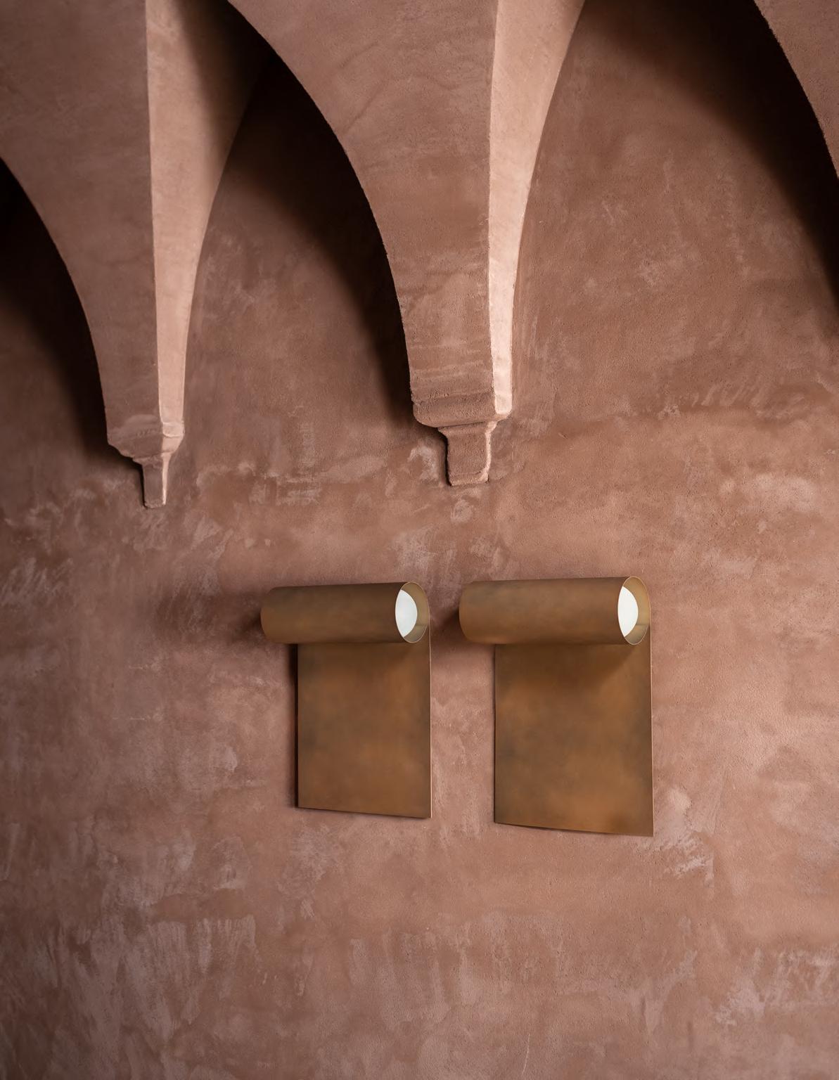 DORIC wall lamp by Umberto Bellardi Ricci, 2024, finish T192 Dèlabrè Brass. MANTIQUEIRA vase by Domingos Tótora, 2019, color Brown. JACOB rug by Salem van der Swaagh, 2024, color Caramel.