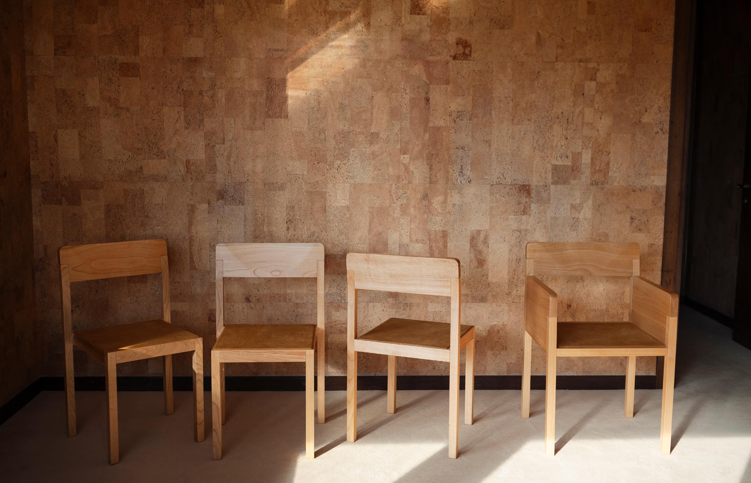 KLOTSKI chair by Michael Anastassiades, 2025, finish T205 Natural Stained Cherry, upholstery Zahir col. 14.