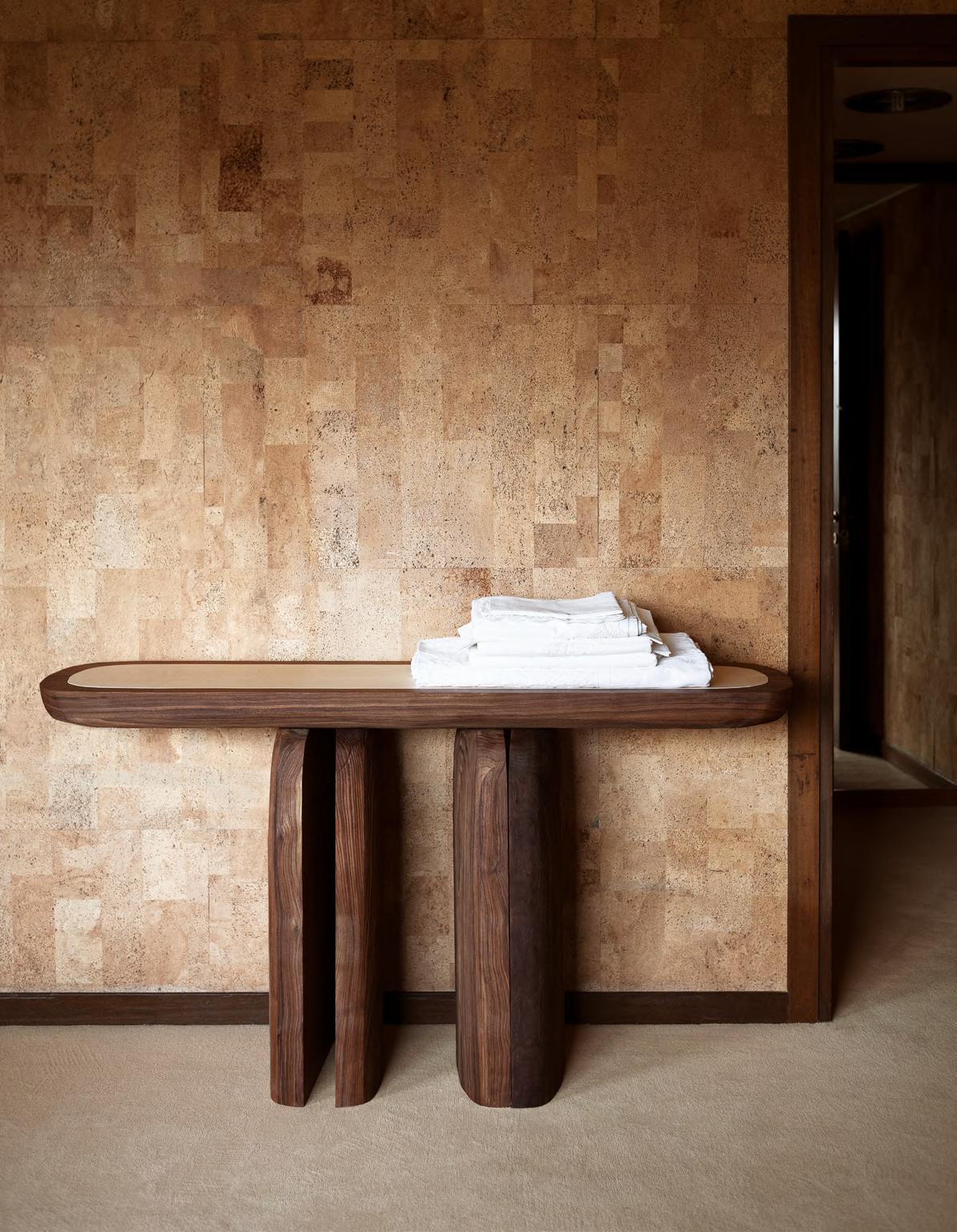 BREAD console by Faye Toogood, 2025, T134 Walnut Stained base, Maple Wood insert.