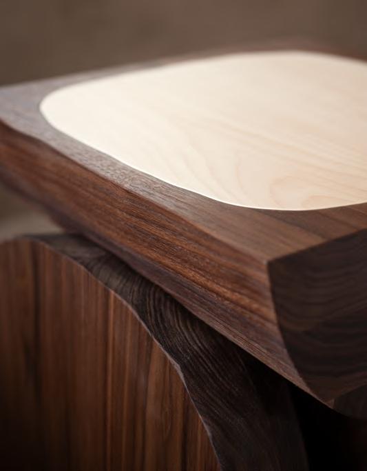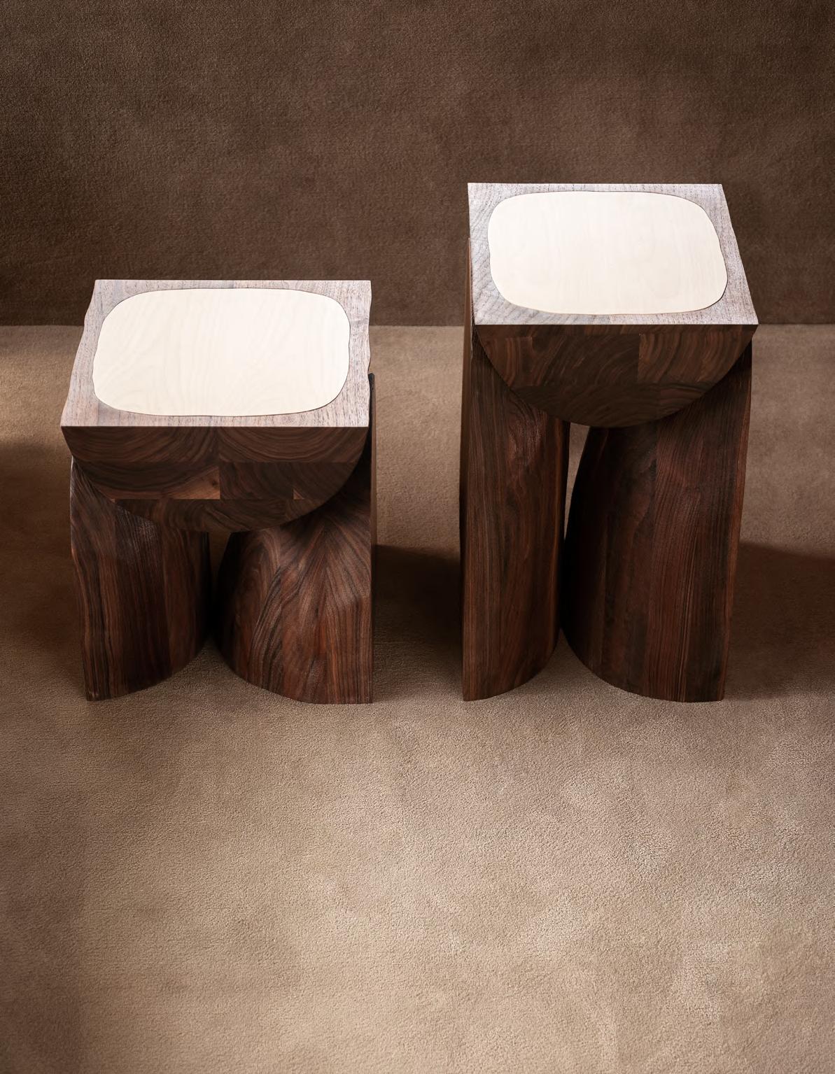 BREAD side table by Faye Toogood, 2025, T134 Walnut Stained base, Maple Wood insert.