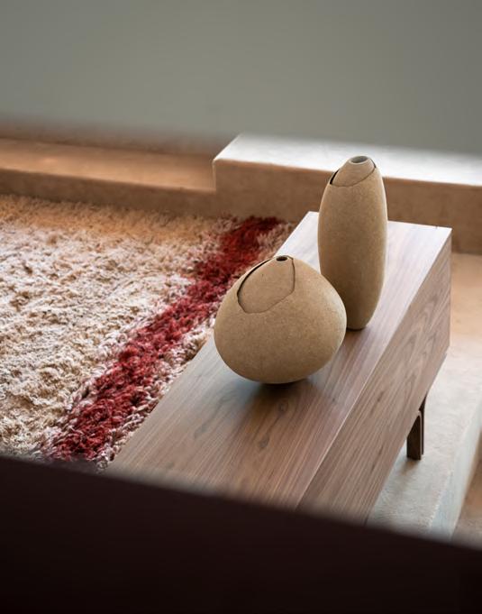 SERIE 500 Model 500/3 storage cabinet by Gianfranco Frattini, (1960) 2024, finish T135 Canaletto Walnut. MANTIQUEIRA vases by Domingos Tórtora, 2019, color Brown. KUSCHEL rug by Salem van der Swaagh, 2023, color Caramel.