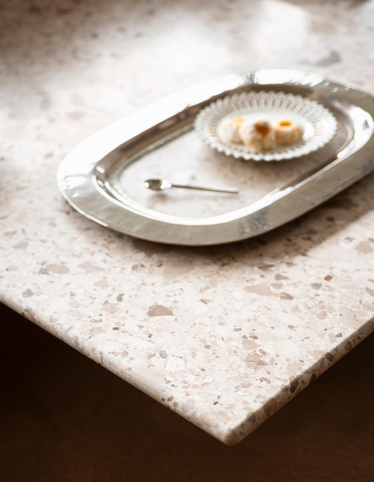 Ceppo Cremo marble top. SOPHIA lamp by Studiopepe, 2022, finish White.