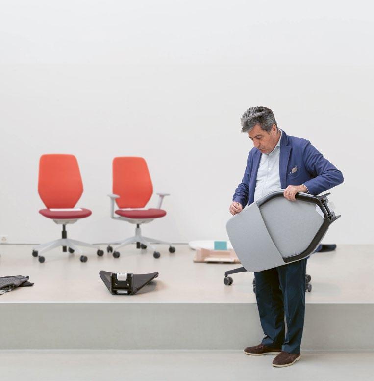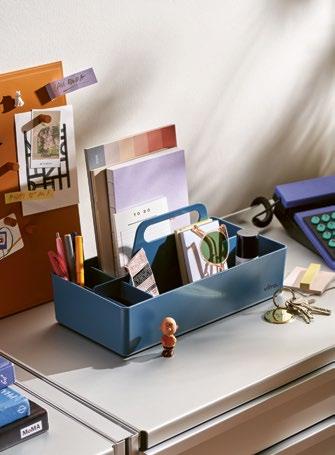 The sourcing, processing and use of materials in products constitute about 80% of Vitra’s overall carbon footprint. That is why materials are continuously analysed, and production methods monitored and evaluated by independent external institutions: the used materials should be as sustainable and low impact as possible. Vitra manufactures an increasing selection of products, such as Tip Ton RE, the HAL RE family and many accessories in a post-consumer recycling material.