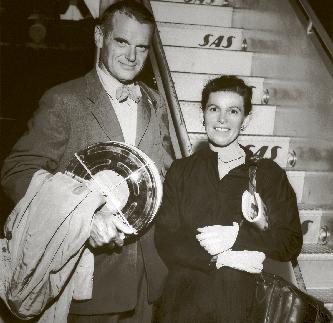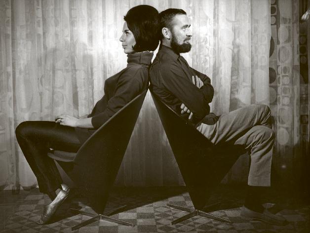 Marianne and Verner Panton sitting back to back in Cone Chairs. The photo was taken in 1965 in Starnberg, Germany. © Verner Panton Design