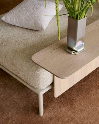 Attach a small table for your laptop today? Remove the panels at the weekend to accommodate overnight guests? And simply extend it with additional elements in two years’ time when you move into a larger flat? The Anagram Sofa is able to respond to life changes both big and small. Thanks to an ingenious click mechanism, the panels and add-on tables can be freely positioned anywhere on the platform while the modular structure allows endless modifications of the entire configuration. Anagram’s softly comfortable and inviting cushions are filled exclusively with recycled PET fibres and the fabric covers are easy to remove for cleaning or replacement.