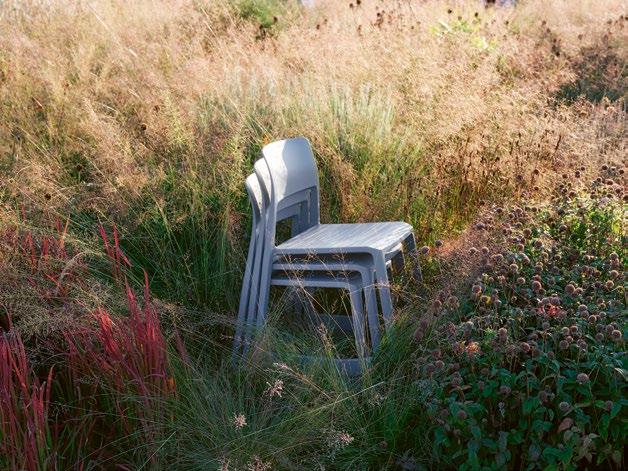 Inaugurated on the Vitra Campus in 2020, the garden by Dutch designer Piet Oudolf features perennial, self-regenerating plants, shrubs, grasses, bushes and wildflowers. Six colonies of bees can be found nearby and are kept according to a combined nesting method by Vitra employees, who are trained apiculturists. To promote further biodiversity on the site, additional areas of the Vitra Campus are also being transformed into green spaces and employee gardens.