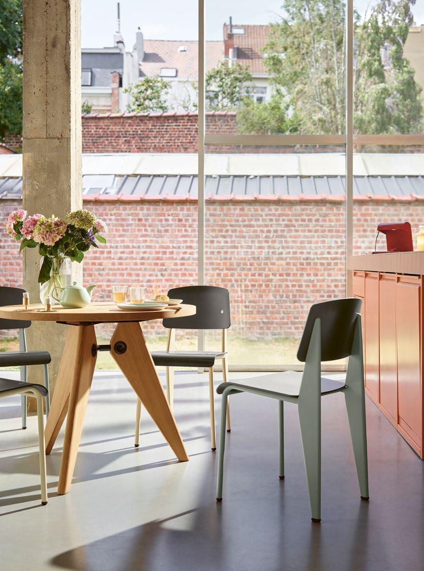 Prouvé furniture by Vitra in the Maison Prouvé in Nancy in 2022. These classic designs in the original colours have withstood the test of time and remain as fresh and relevant today as ever.