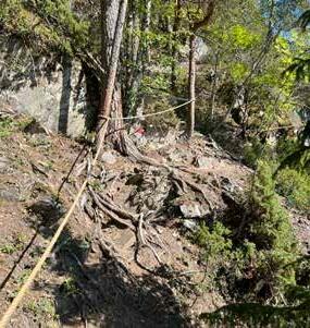 De neste timene går vi fra utsikt til utsikt. Først noen glimt av Bandak, så storslagen utsikt tilbake mot Dalen, og etter hvert mer og mer utsikt østover mot Lårdal. Underveis forteller infor mative skilt oss om husmannsplasser og skjebner, riser og gygrer, sagn og fortellinger.