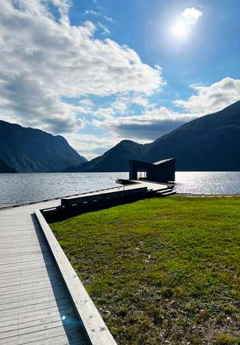 ende, hyttefolk og turister, forklarer Bringsvor. Han forteller ivrig om sher patrappene opp til Rui, den spektaku lære Lårdalsstigen mellom Dalen og Lårdal, et omfattende nett av skiløyper og ikke minst den vakre saunaen som ligger som et Soria Moria i enden av Bandak. – Dette er attraksjoner som inviterer til lekenhet og som samtidig byr på en utfordring, skryter Bringsvor.