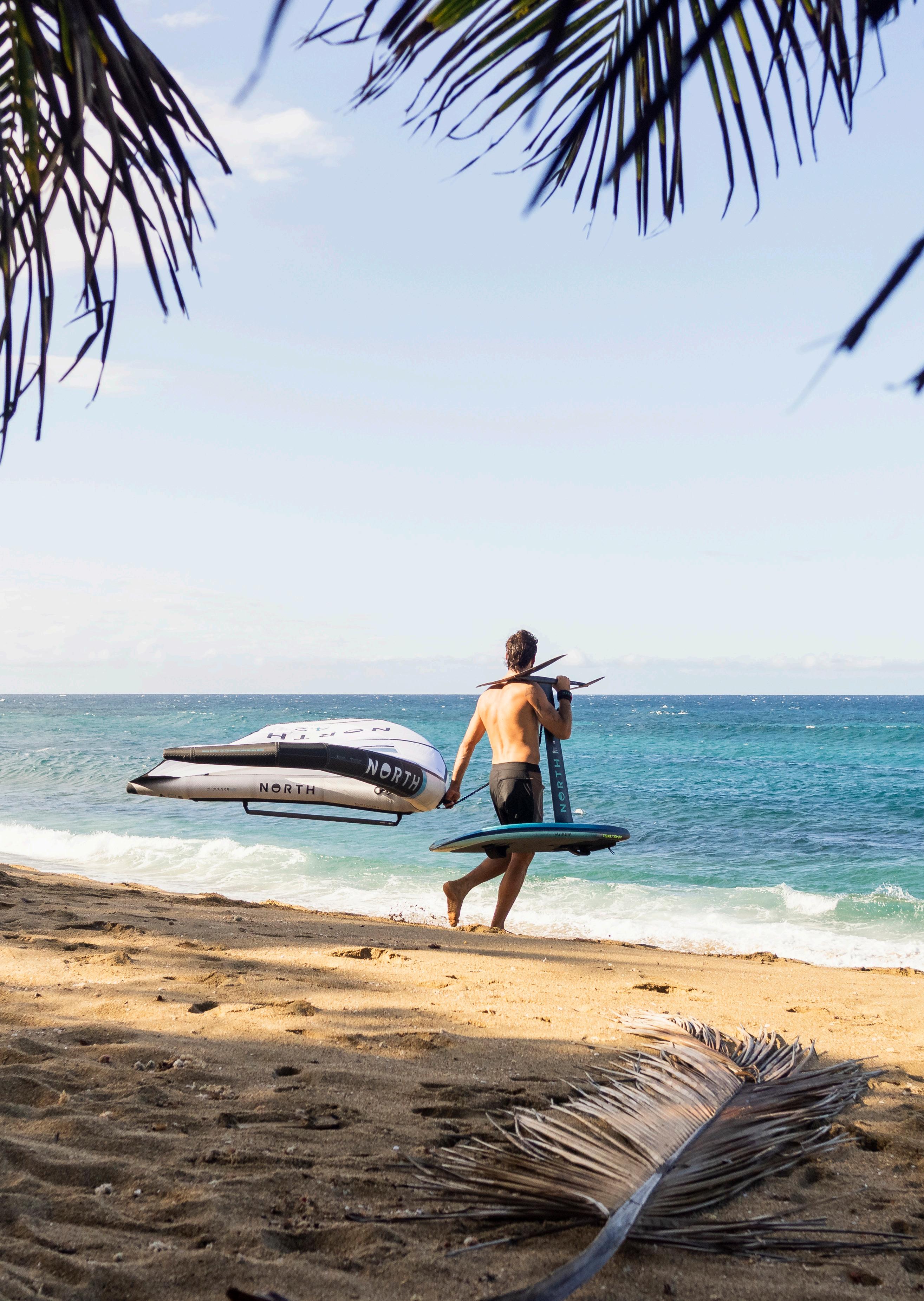 A recessed carry handle on the underside of the foil board allows balanced load handling with or without the foil attached, your other hand free to carry your wing or paddle down to the water.