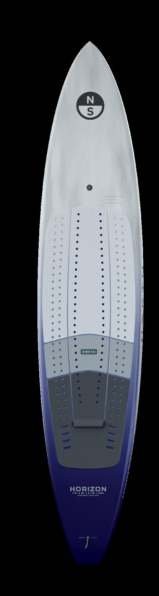 The low front rocker boosts efficiency, for fast and easy lift onto foil and low drag on touchdowns.