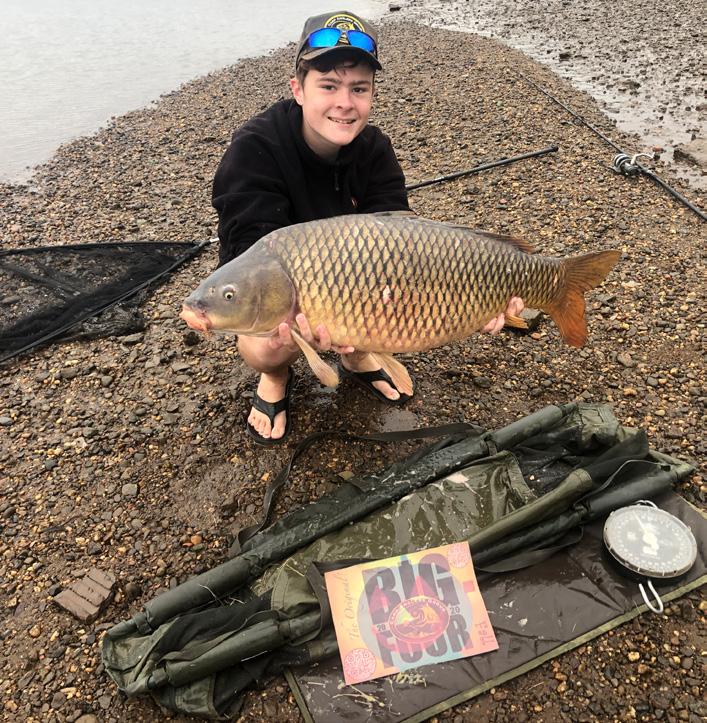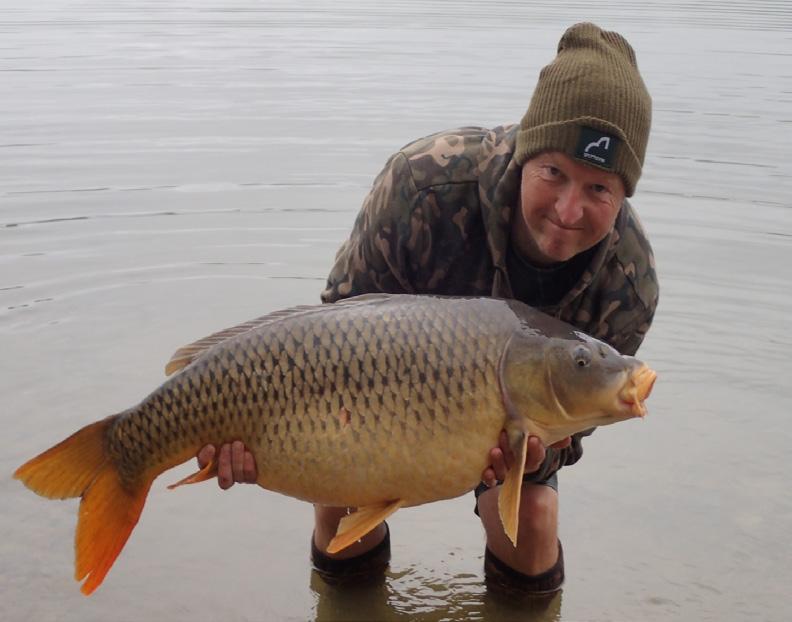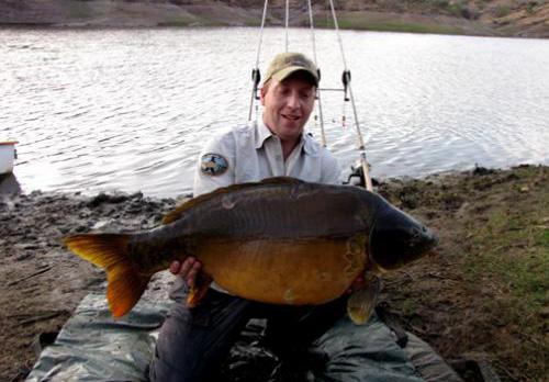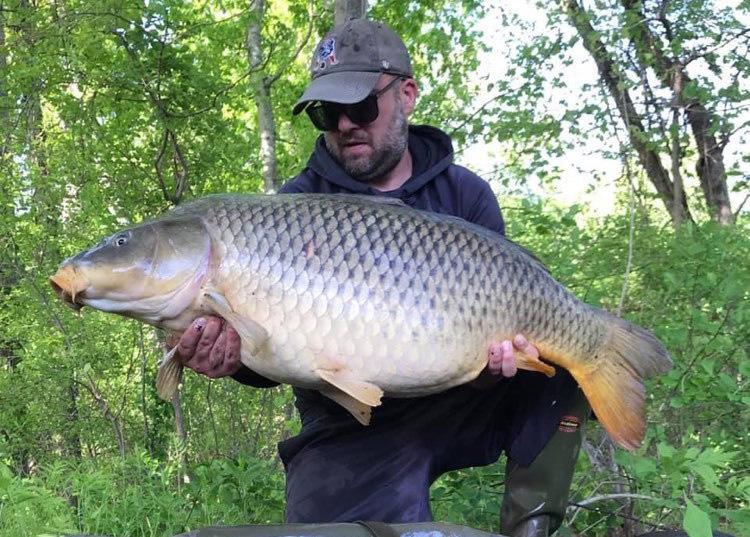A solid twenty five pound common nailed in the bottom lip. Taken on a ‘shot-on-hook’ rig with imitation corn over a bed of particles.