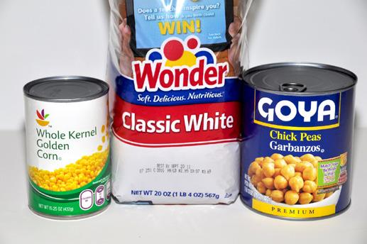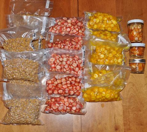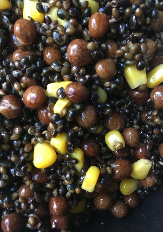 Particles: Canned Sweetcorn or Chick Peas, Field Corn (soaked 24 hours and boiled 40mins to soften) and other seeds such as tiger nuts (chufa) etc.