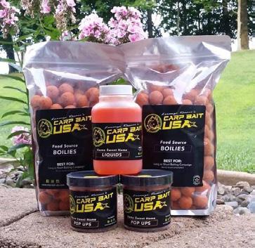 Boilies: Specially prepared dough balls made with nutritious ingredients, flavors and eggs. The term boilie originates from dropping the baits in boiling water for 1-2 minutes to harden them. There are now several US based boilie makers as well as European made imports available.