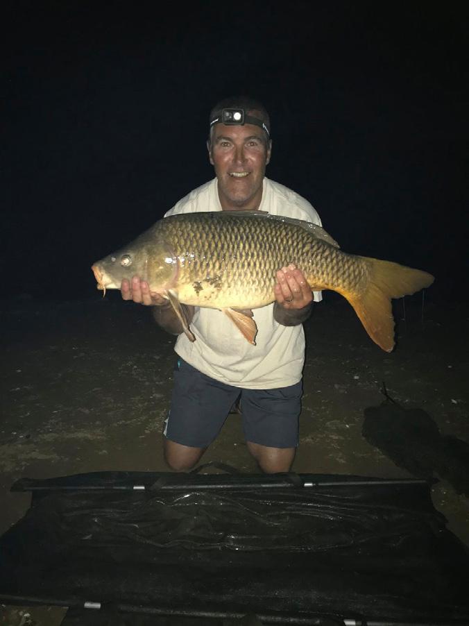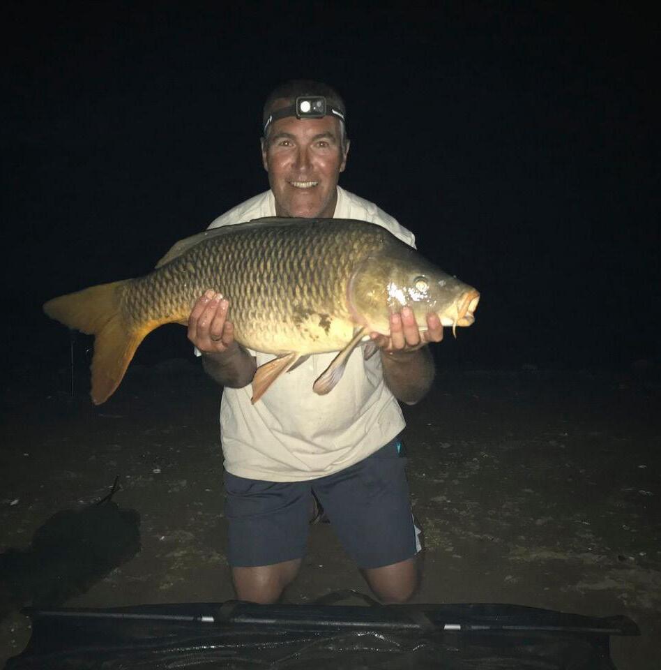I was woken again at 3am with a 13lb common, then at 3.25am with a very strong run, which after a 5 min struggle snapped me off in the weeds. I thought that was it for the night (or morning as it then was) but another run at 4am landed a nice 22lb common, tiger nuts seemed to be the bait of the day. I had to hit the sack again to get some sleep.