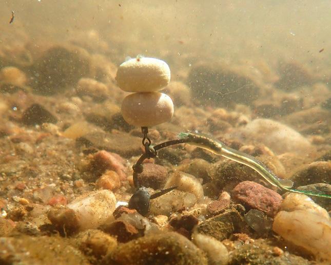 One of my all-round favorites is Frank Warwick’s Long Shank rig. Ideal for 3-5 kernels of feed corn on the hair when fished as a bottom bait or balanced with some pop-up imitation corn.