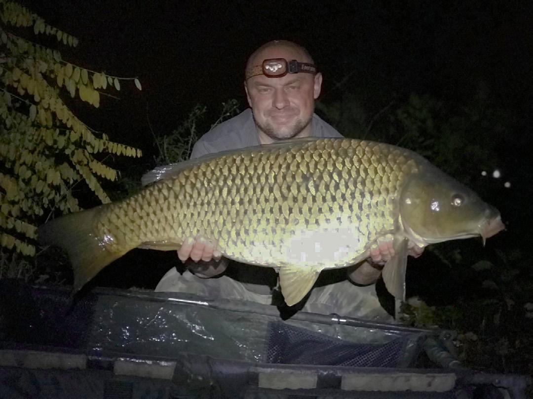Nothing occurred overnight until 7am the next morning when I had a “Delkim Screamer”, I knew this was a heavy fish, a nice solid feel to it, not much fight just a heavy slow drag. I landed my new PB a 32lb common with a nice belly, “YES, get in the net!!!”