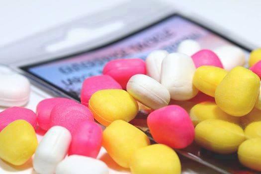 Imitation baits: A carp’s inclination to pick up objects while feeding has led to a wide range of plastic imitations that look like grains of corn, tiger nuts, boilies etc.