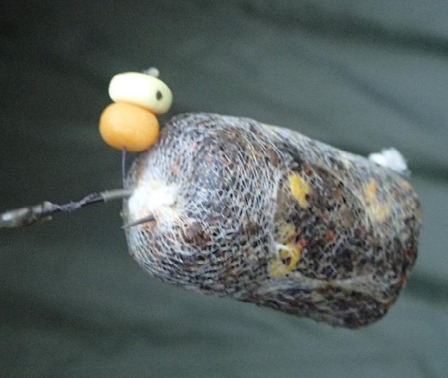 Cover the method with a wet towel to stop it drying out. If it is too dry and won’t hold together add just a little water at a time until it molds nicely again. Some anglers like to add some salt and / or flavor (add this to the creamed corn before mixing with the oats). While some anglers prefer to place the bait & hook in the method ball so it does not tangle on the cast some prefer using a short hook length of 3-4” which also keeps the bait in the method pile. A boilie wafter, imitation corn or couple grains of field corn on the ‘hair’ are ideal bait choices when fishing method!