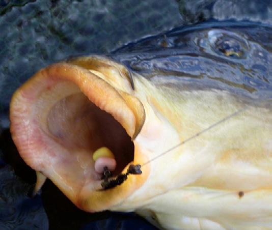 Here the bait is suspended on a short length of braid (known as a ‘hair’) instead of being placed on the hook. The carp confidently sucks up the hair rigged bait and tries to spit it out when it feels the hook, which by now is already inside its mouth. The action of ejecting the bait causes the hook to take hold and the carp is hooked!