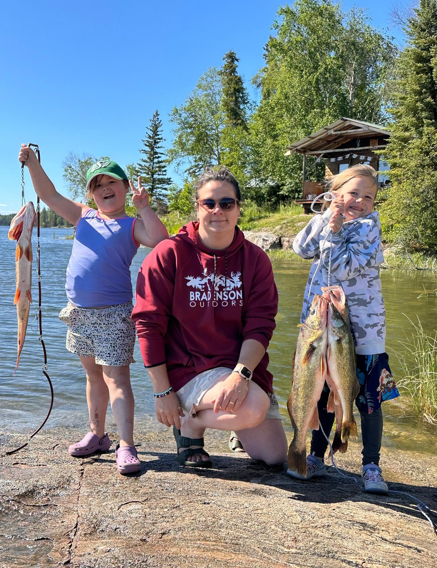 Turnaround was quick, with gear unloaded and replaced with that of the previous week's guests. My cousin Janet Becker and her husband Terry, Scott and LaCaylla Fink, and their two oldest kids, Bristol and Brayden, joined us. The Fink clan had ventured up from Nebraska for their first international travel and tried to soak in the beauty and vastness of the boreal forest. We settled into our cabins, made a quick lunch, organized fishing gear, and hit the water in the boats waiting for us at the docks. Family adventures are always exciting; sharing the wilderness setting with our girls was priceless.
