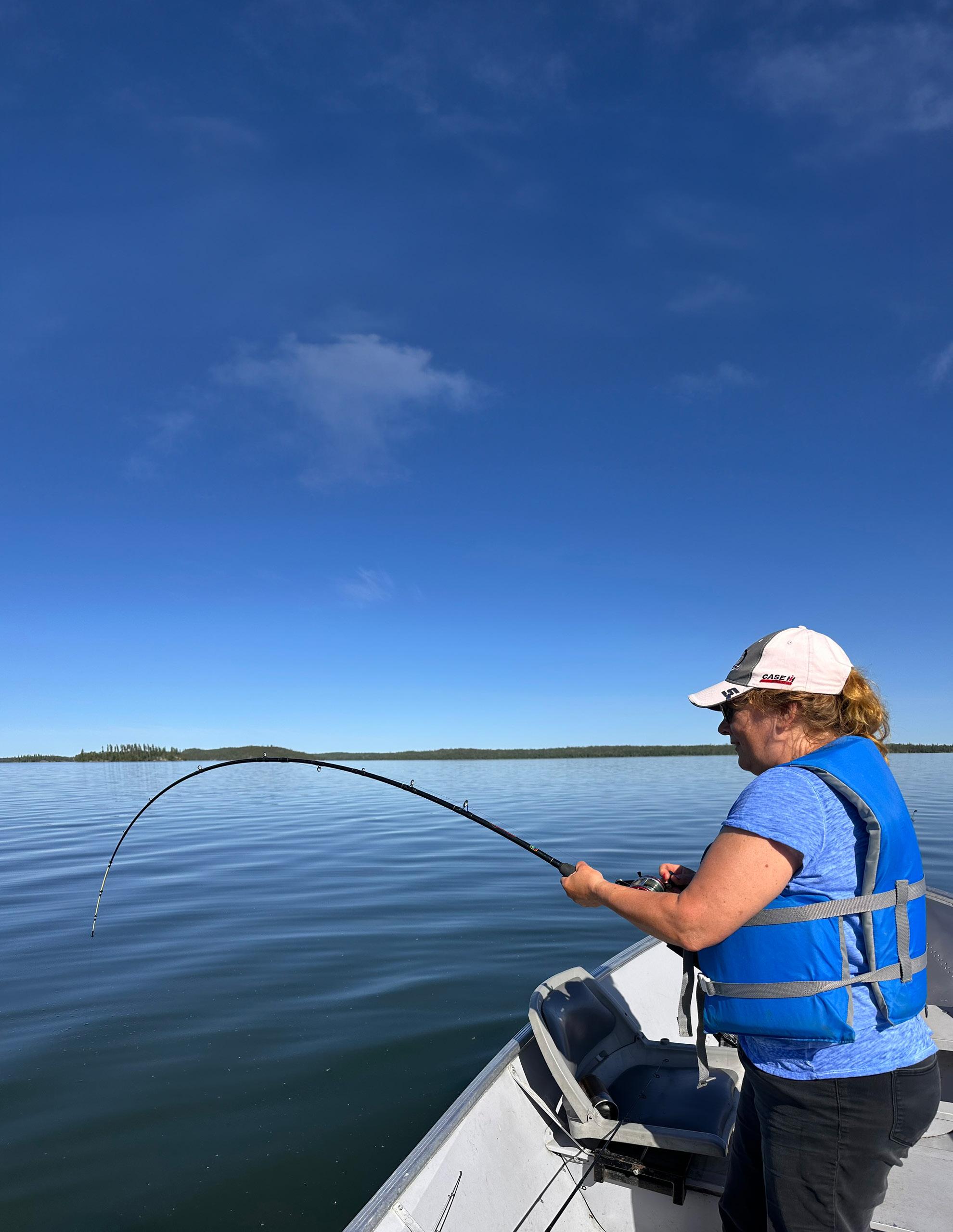 Maya asked for help getting a picture of the big walleye she landed.