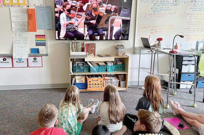 Students in Fuquay-Varina watch a Symphony performance via livestream (2022).