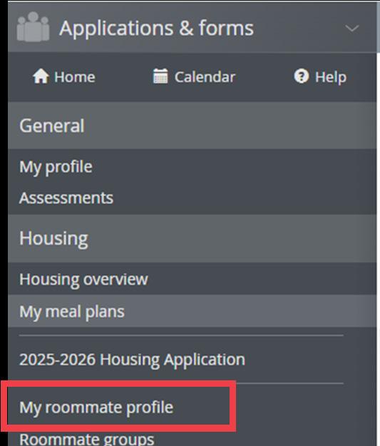 Complete your housing profile and roommate profile questions to proceed to the housing application form.