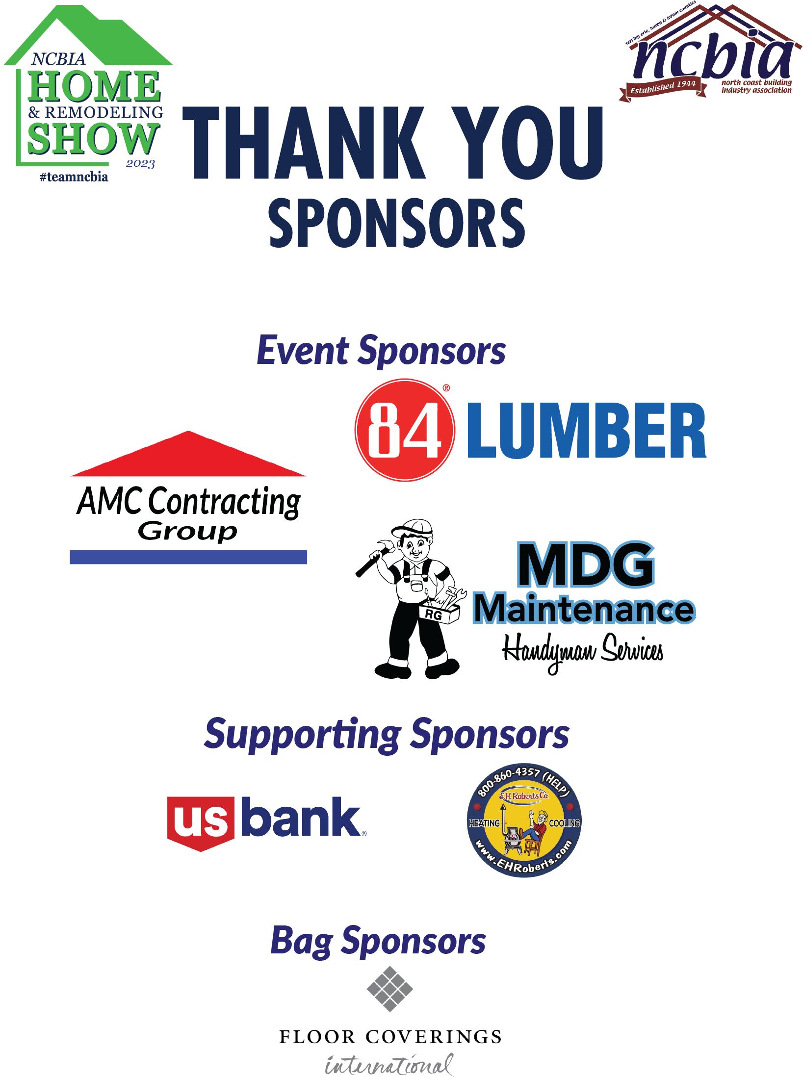 2023 NCBIA Home & Remodeling Show THANK YOU SPONSORS!