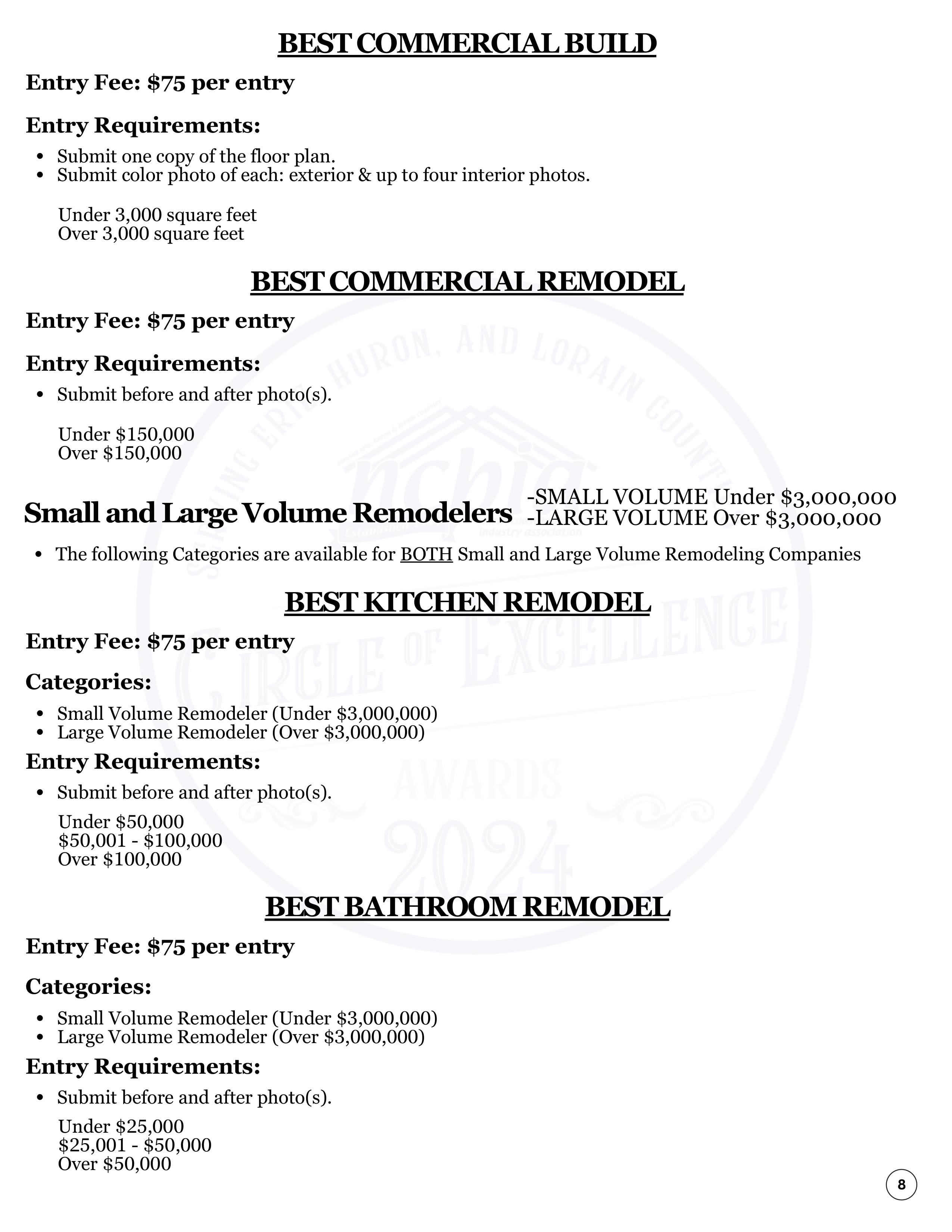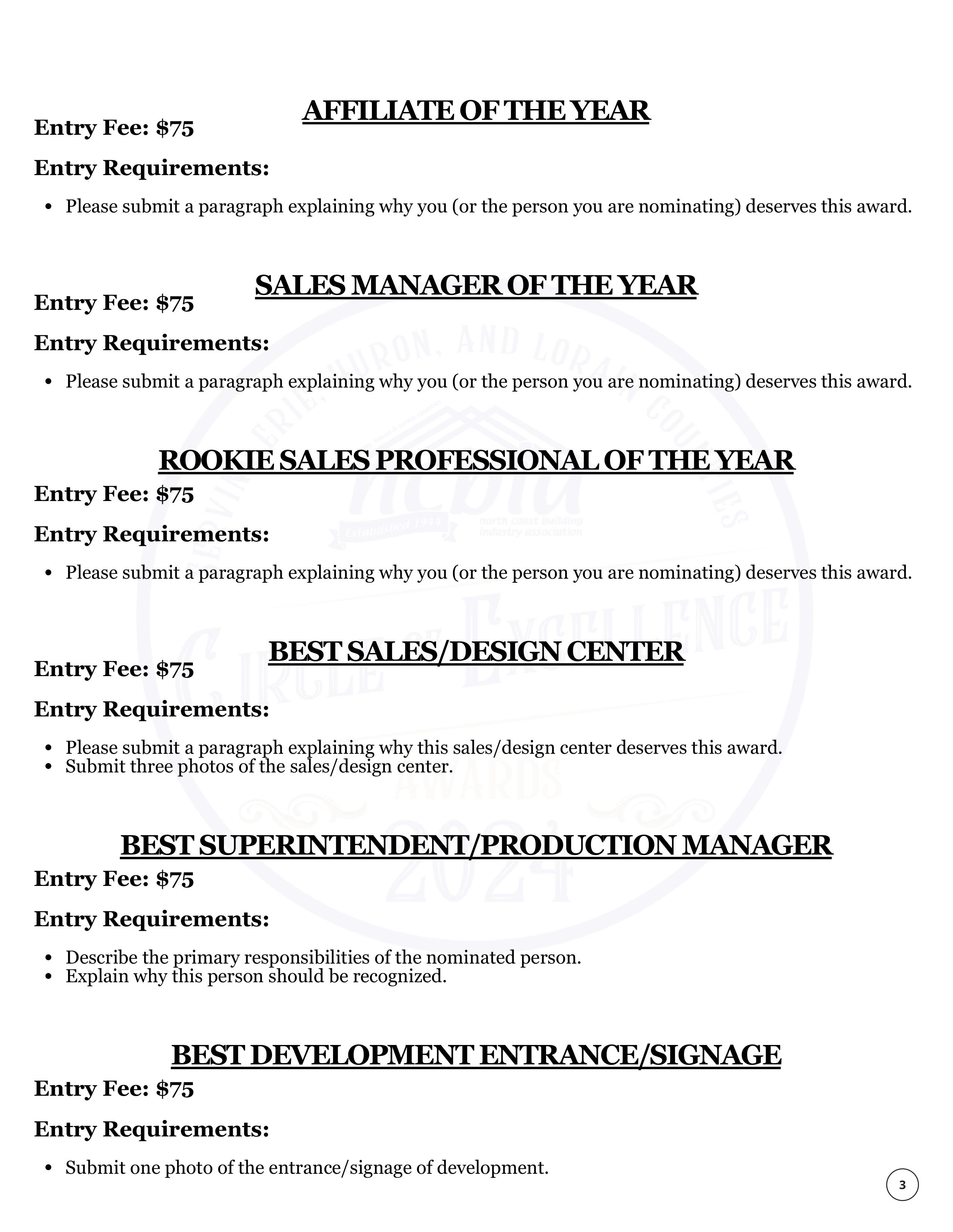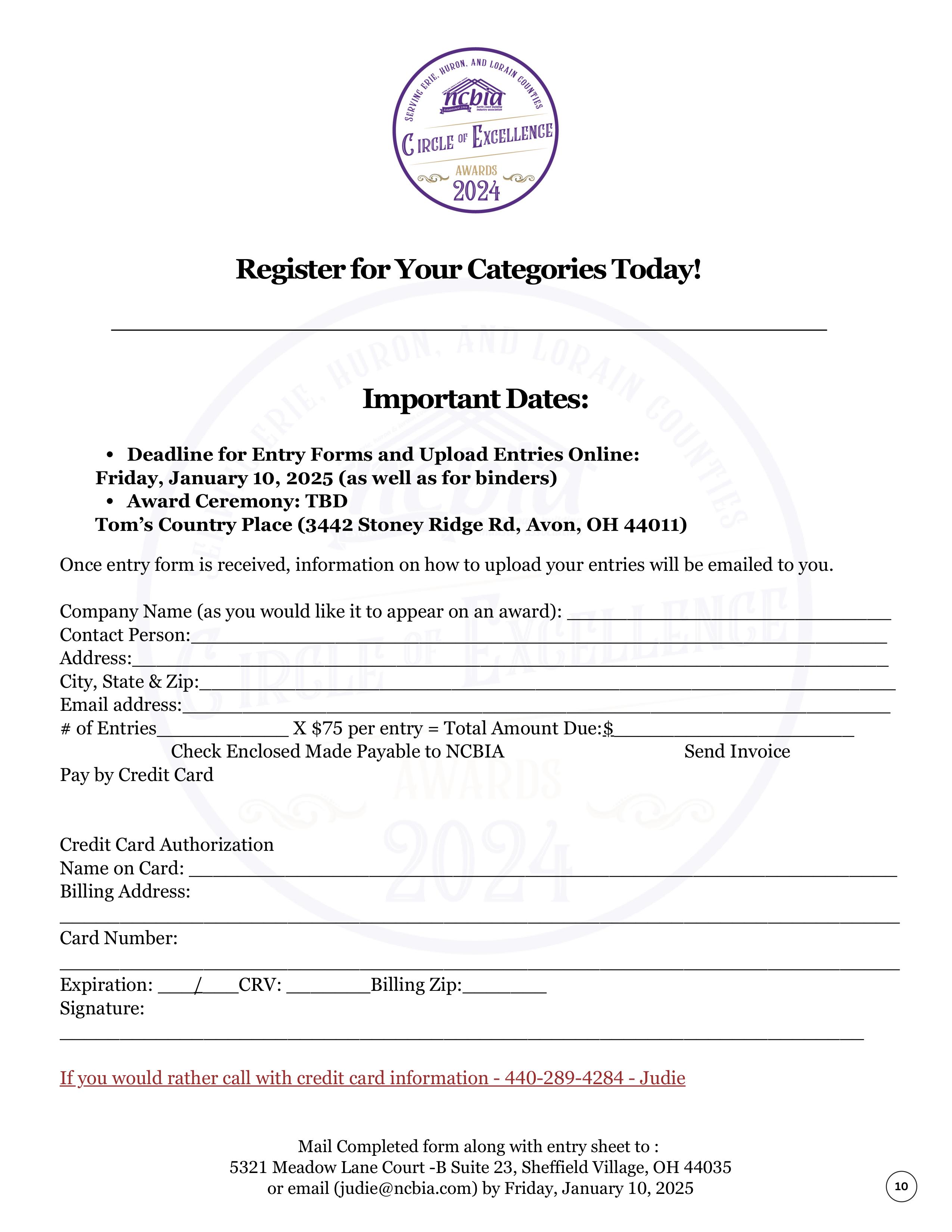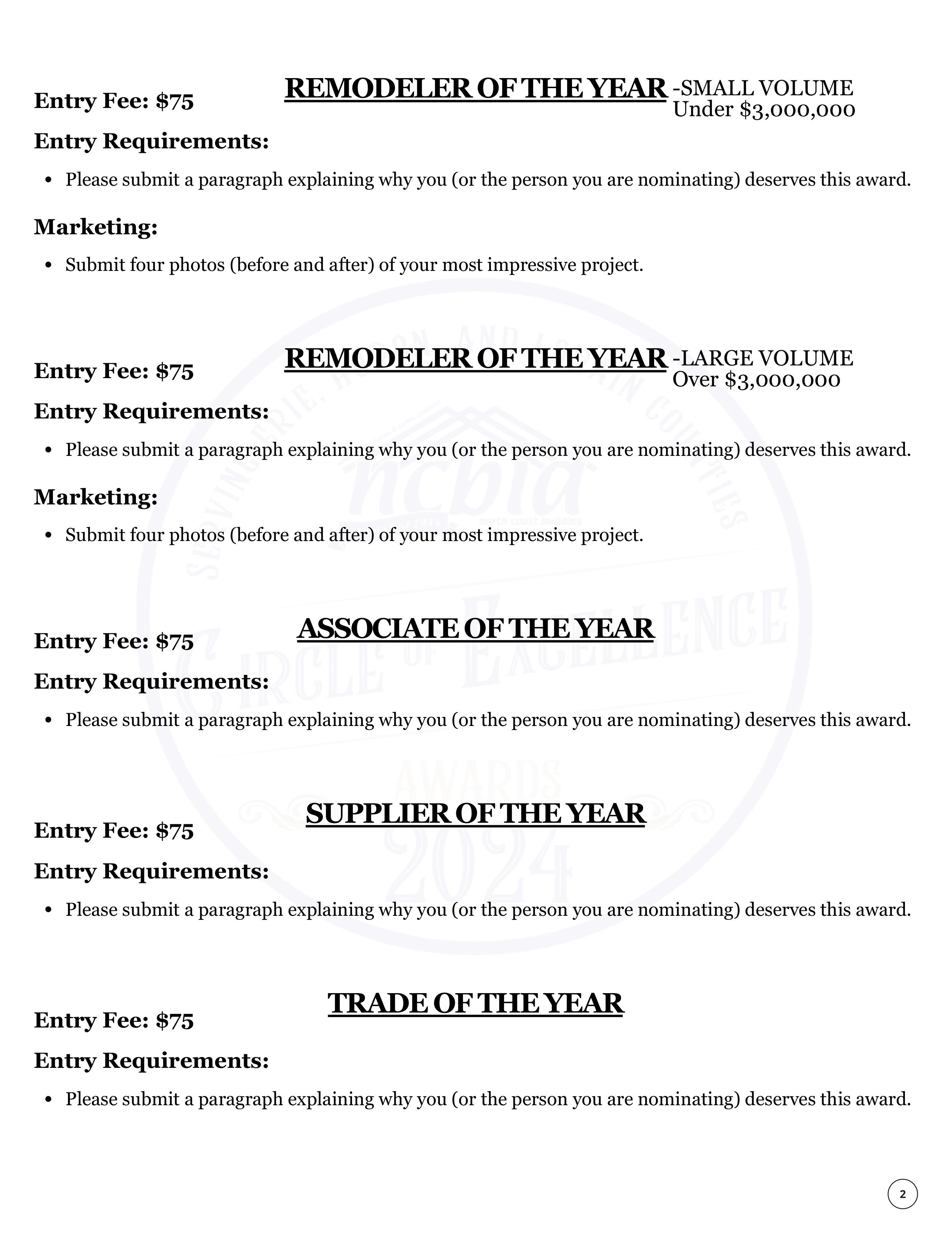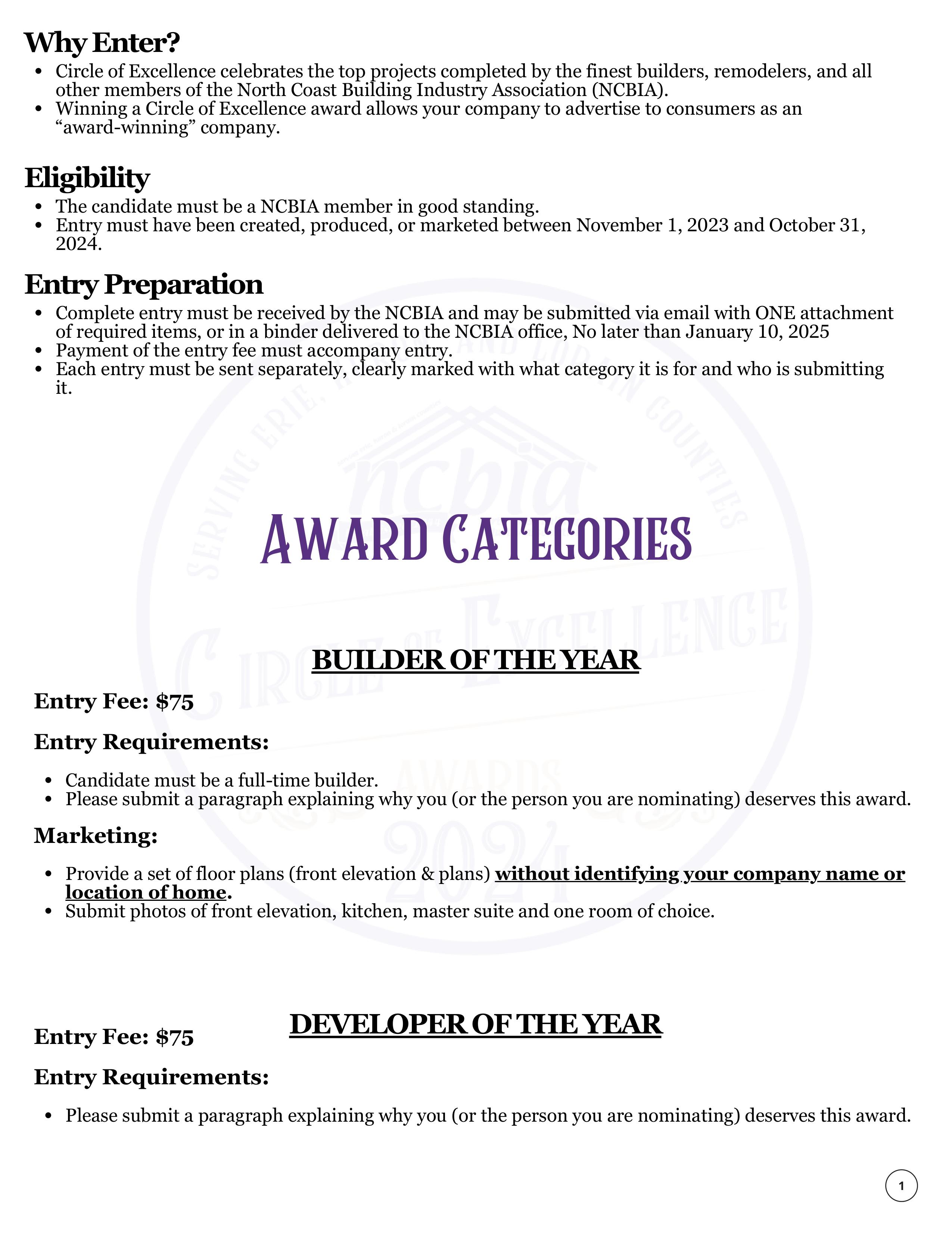 If you want to check on the criteria for your nominee, please contact the NCBIA office at (440) 934-1090.