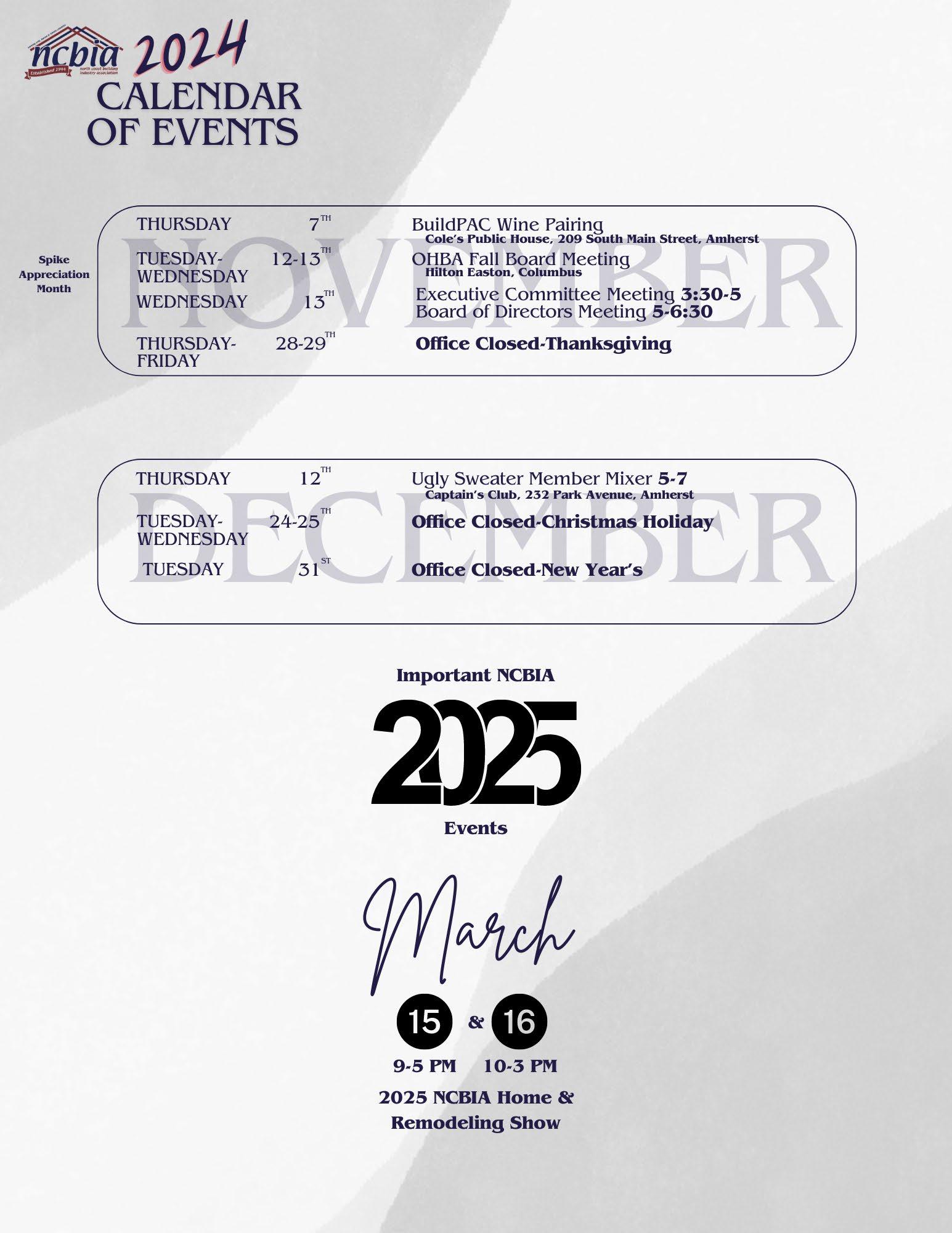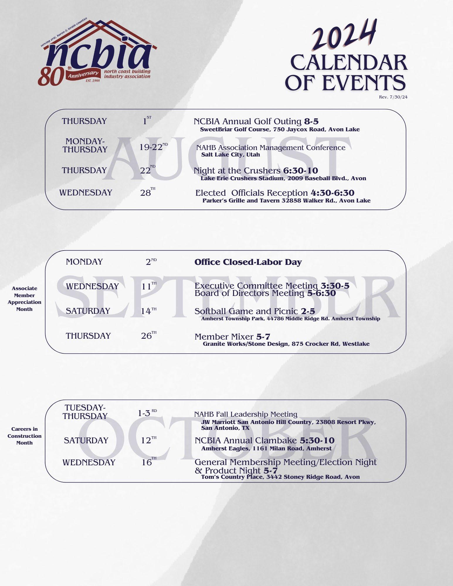 North Coast Building Industry Association (NCBIA) BUILDER newsletter is the official newsletter of the NCBIA and is published monthly by the NCBIA. The NCBIA is an affiliate of the Ohio Home Builders Association (OHBA) & the National Association of Home Builders (NAHB).