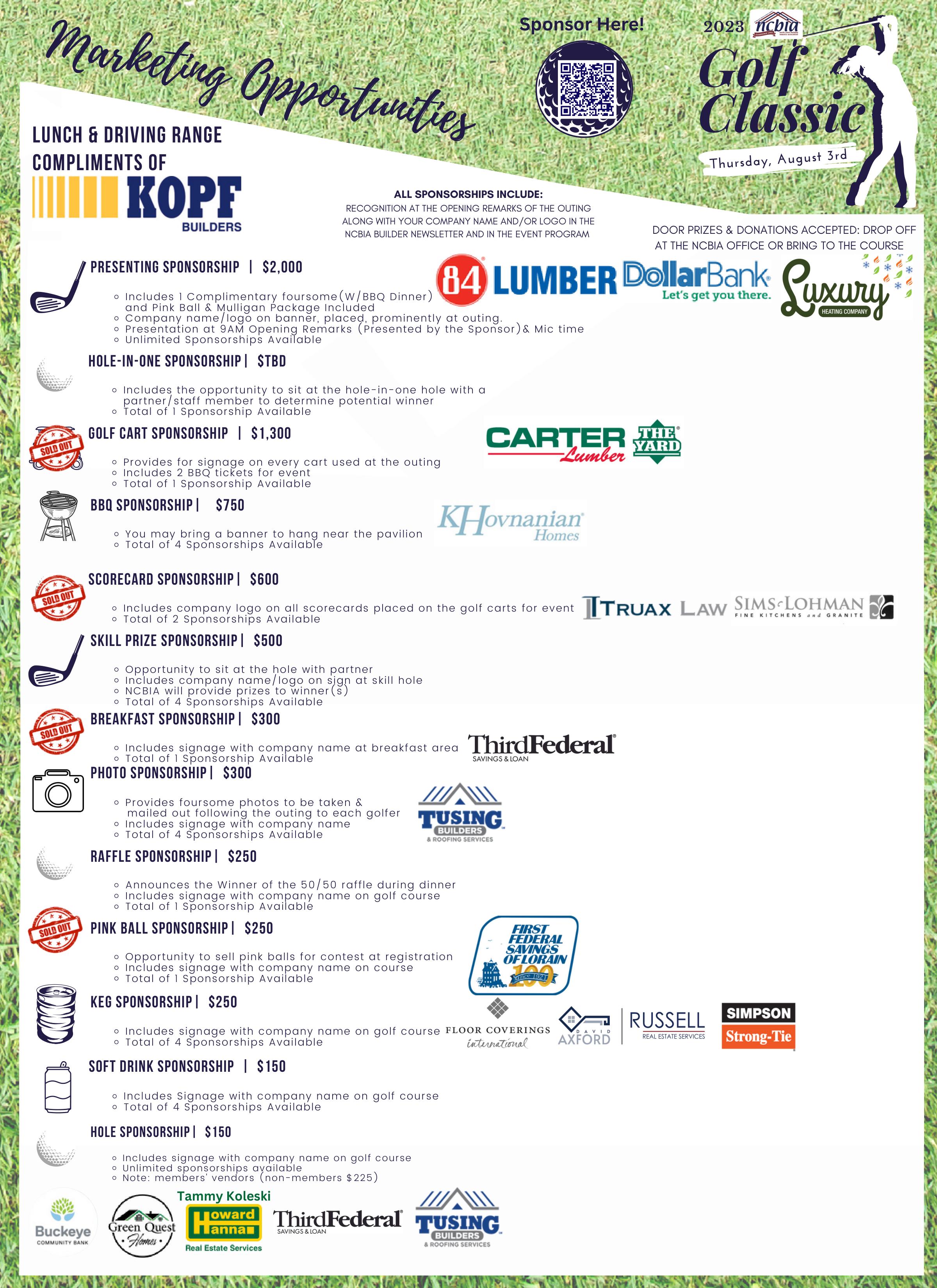41-42 - 2023 Annual Golf Outing Flyer SPONSORSHIP OPPORTUNITIES GOING QUICK!!
