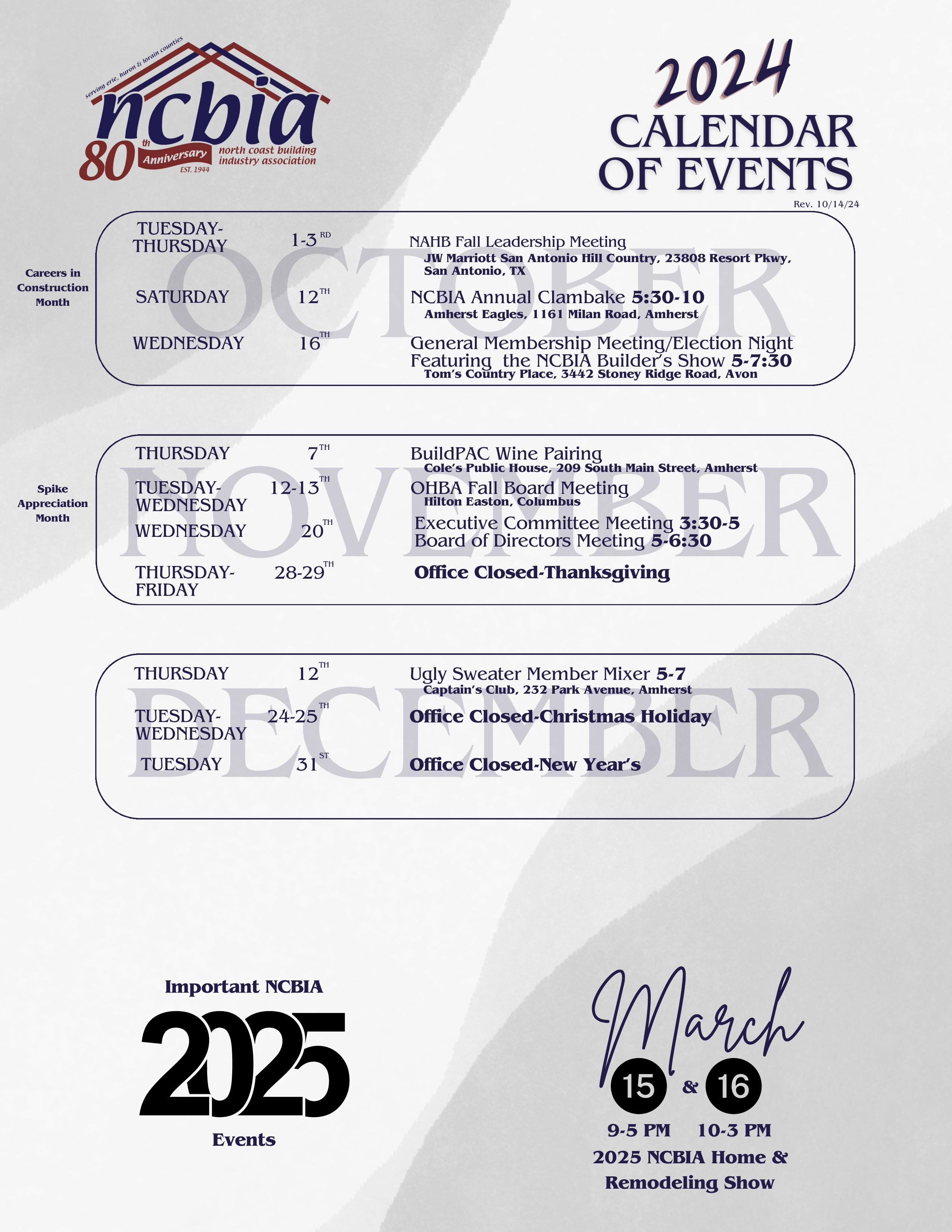 Check the website at www.ncbia.com for up-to-date changes, additions, and corrections to these events!