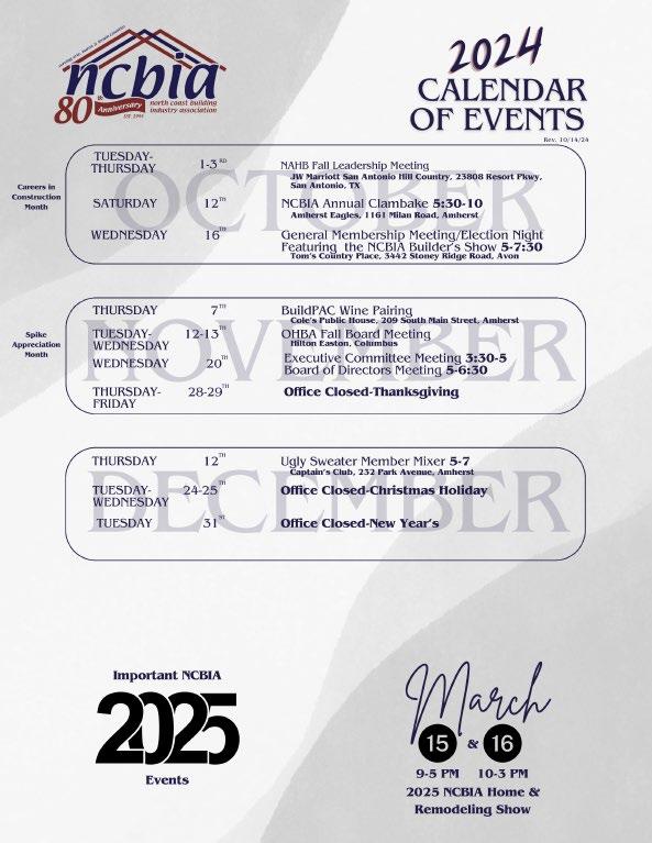 North Coast Building Industry Association (NCBIA) BUILDER newsletter is the official newsletter of the NCBIA and is published monthly by the NCBIA. The NCBIA is an affiliate of the Ohio Home Builders Association (OHBA) & the National Association of Home Builders (NAHB).