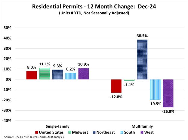 NAHB is forecasting a slight gain for single-family housing starts in 2025, as the market faces offsetting upside and downside risks from an improving regulatory outlook and ongoing elevated interest rates,. And while ongoing, but slower, easing from the Federal Reserve should help financing for private builders currently squeezed out of some local markets, builders report cancellations are climbing as a direct result of mortgage rates rising back up near 7%.