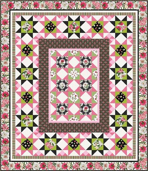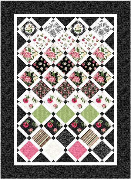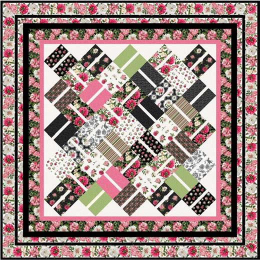 37” x 49” By Sara Lister of Ladeebug Design Great shop kit – 9 fat quarters and a coordinate Fun beginner class with straight cutting/piecing and a unique layout