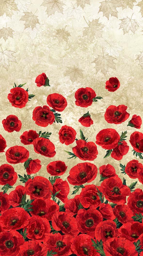49 C PTN3075 SCATTERED POPPIES 64” x 74” By Daphne Greig of Patchworks Studios Size suitable for Quilts of Valour Two color options - light or dark lattice Easy to kit C WHERE POPPIES GROW FREE DOWNLOAD 56” x 68” By Northcott Studio Available at www.Northcott.com Entire Collection 23 pieces including wide backing and 14 existing SKUs Shipping starting May 2023 KIT CHART PG.97 KIT CHART PG.97