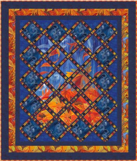 Great pattern for larger prints & border stripes Definite WOW factor display Yardage to make all of the projects is provided for easy kitting Runner: 17 1/2" x 37 1/2" Placemats: 13" x 18" Pot holder: 9” KIT CHART PG.98 Entire Collection 14 pieces including wide backing • Shipping starting April 2023